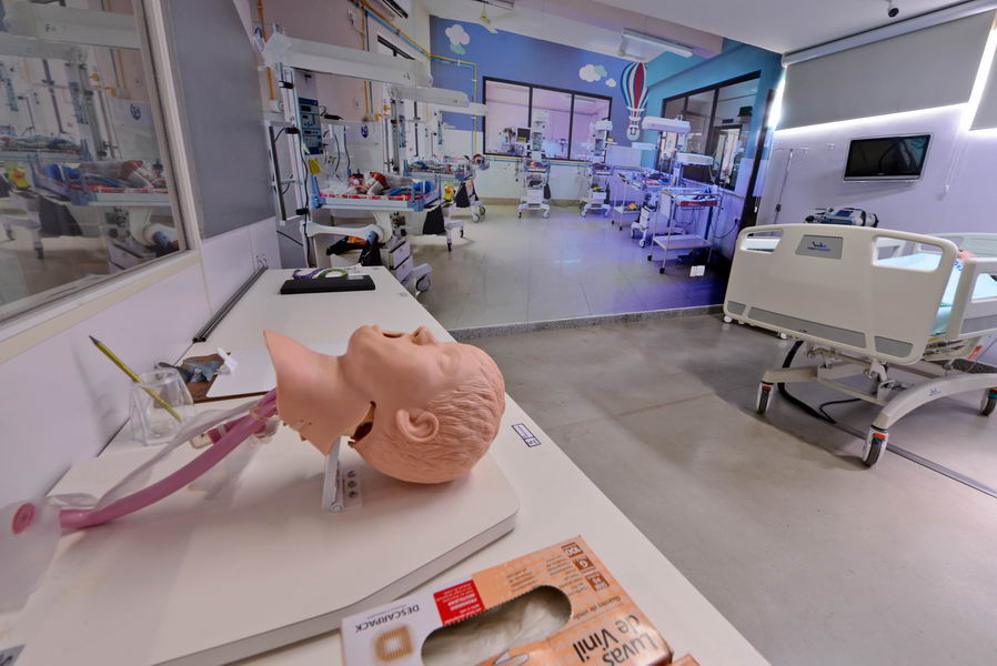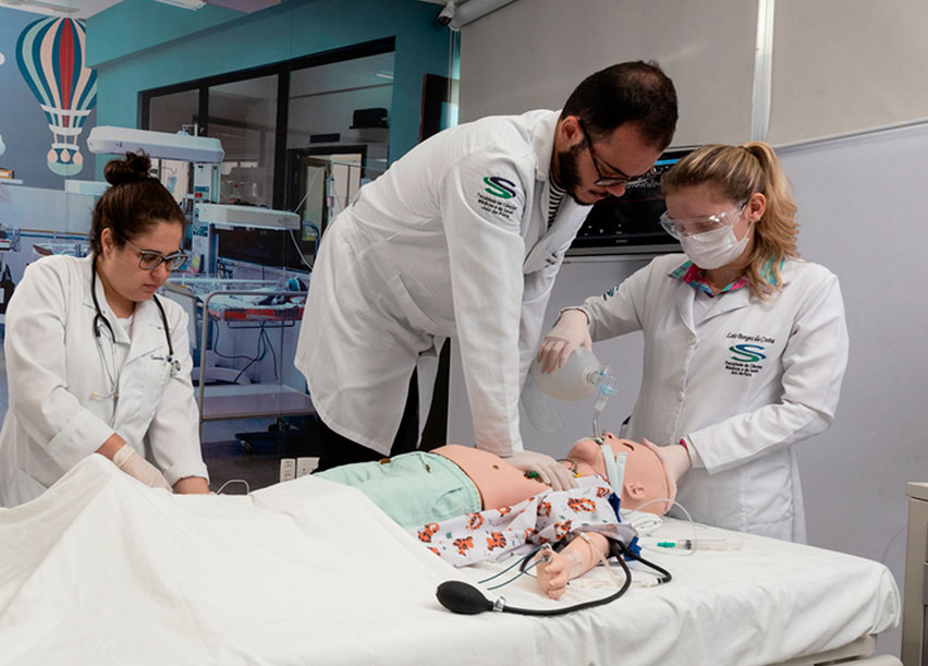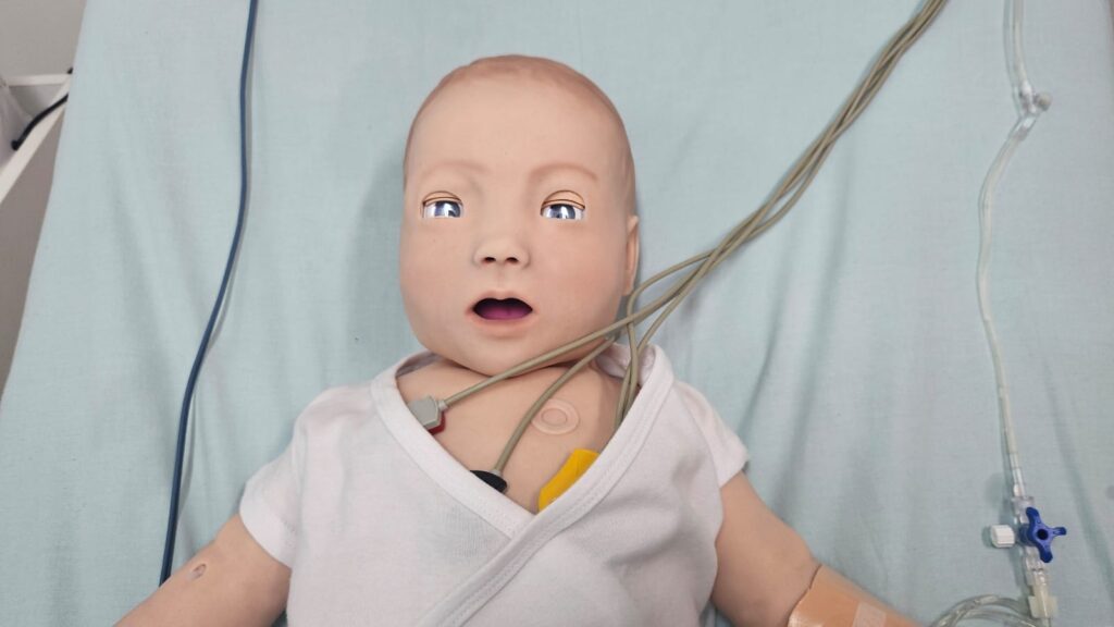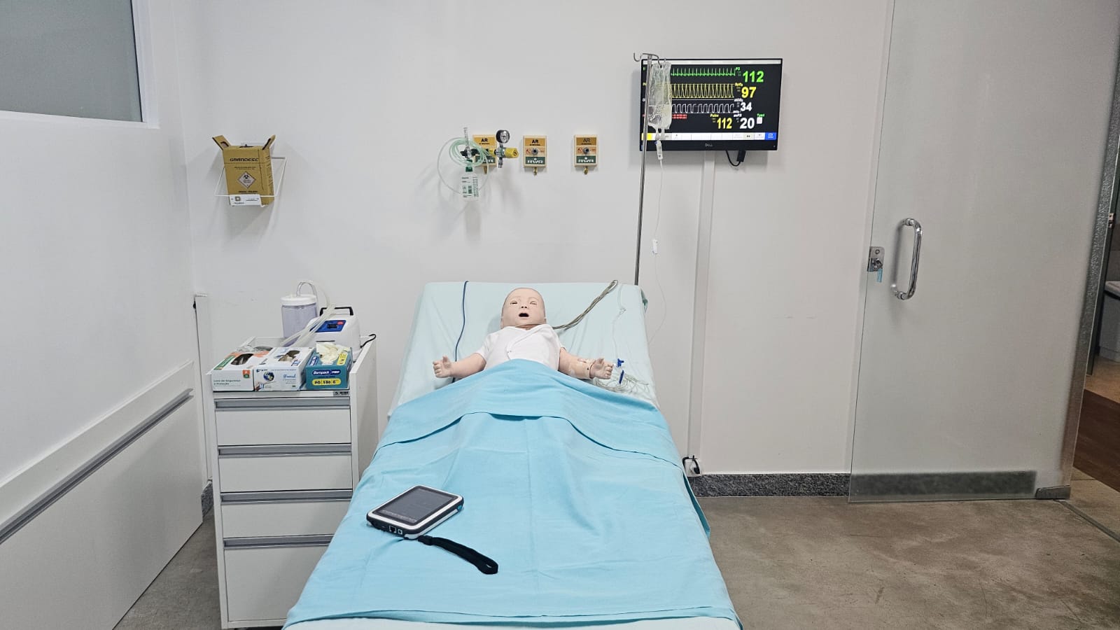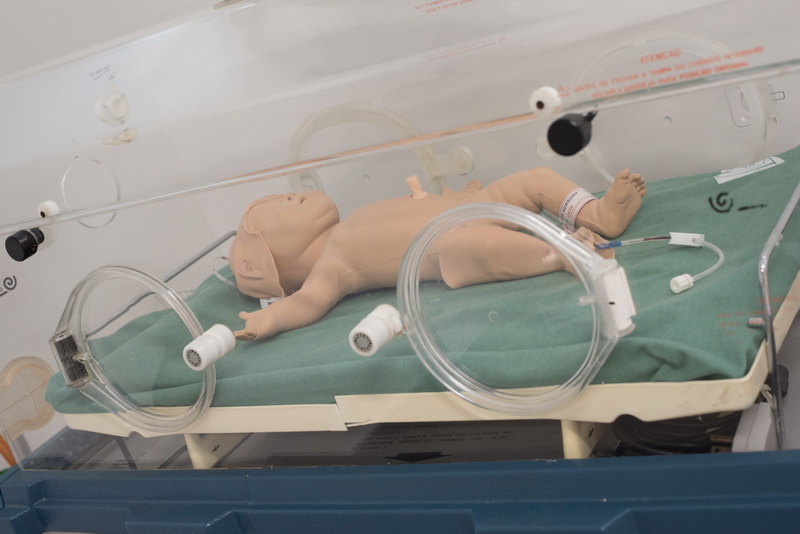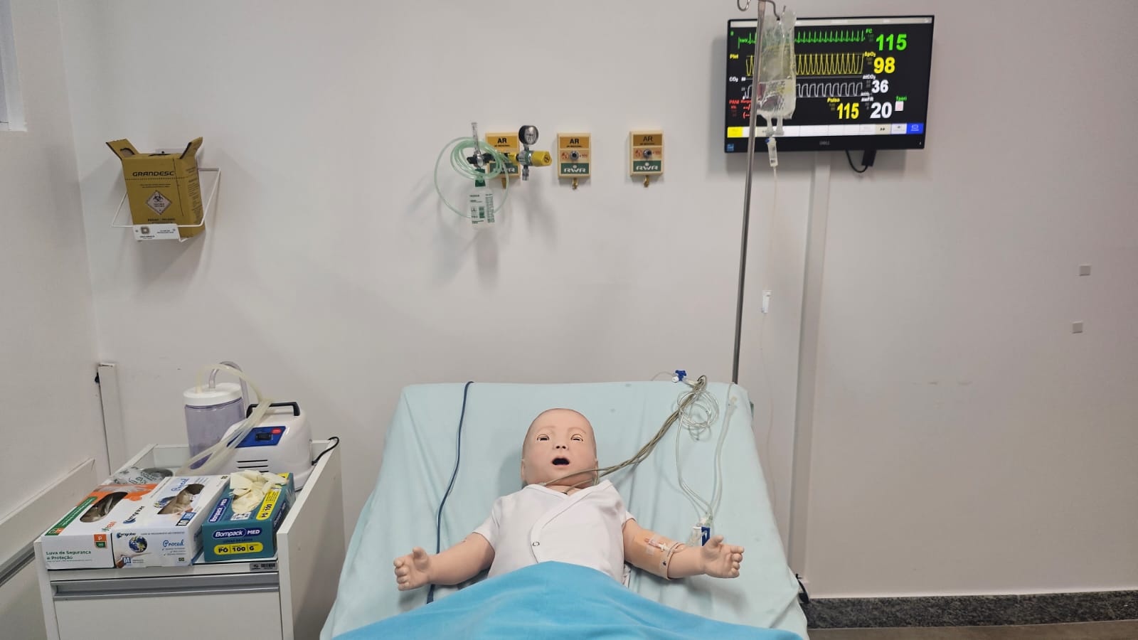O simulador Simbaby/Laerdal® representa um paciente pediátrico de 9 meses, proporciona treinamento avançado, além de auxiliar profissionais da saúde na assistência a pacientes críticos melhorando a capacidade de atuação, confiança e as habilidades de comunicação durante o atendimento em situação de emergência, terapia intensiva, home care, entre outros, com respostas fisiológicas de acordo com cada sistema. É um simulador sem fio e possui a tecnologia QCPR para monitorar e aprimorar o desempenho da RCP. Possibilita o treinamento e o transporte pela equipe interdisciplinar, viabilizando a continuidade do tratamento.