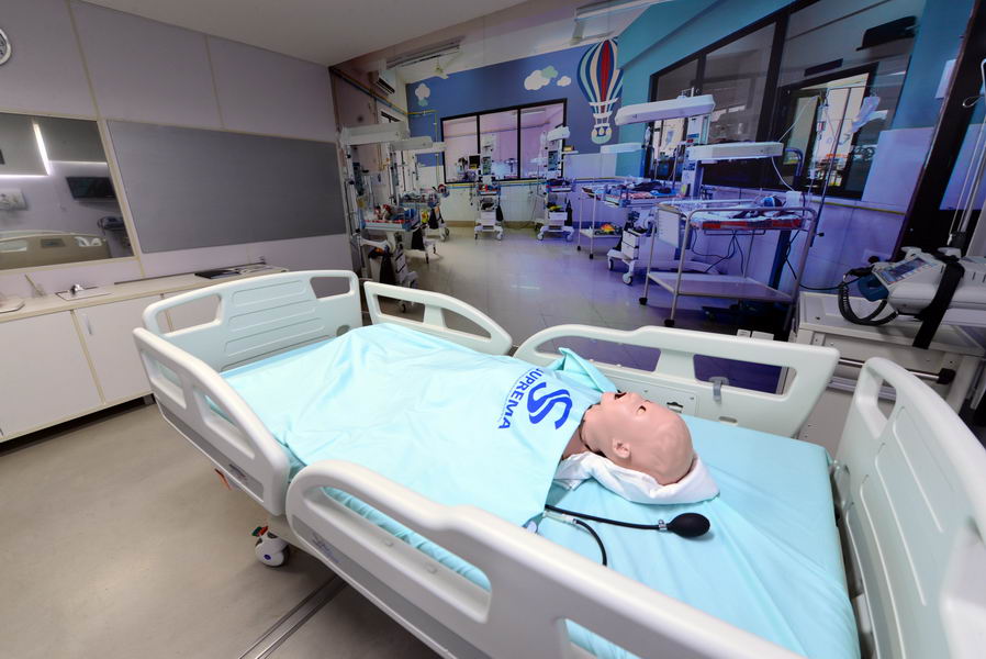 PEDIASIM/CAE um simulador de paciente pediátrico com idade aproximada de 6 anos, é um simulador de alta fidelidade que oferece significativos recursos realísticos para complementar a etapa entre a teoria e a experiência clínica. Fornece a aplicação de conhecimentos para o tratamento de pacientes pediátricos com segurança, em ambiente livre de riscos.